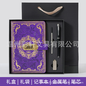 图文紫色-四件套【密码锁本+笔+笔芯+U盘】