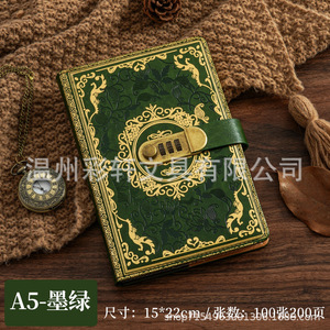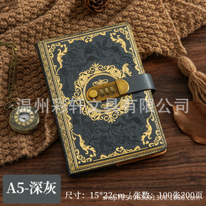 跨境A5复古密码日记本带锁加厚创意手账本学生日记本文具笔记本子