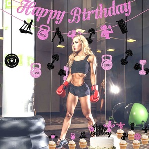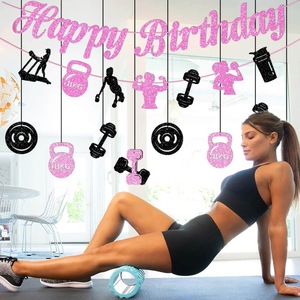 新款生日装饰布置健身拉旗 女生健身房生日派对装饰横幅蛋糕装饰