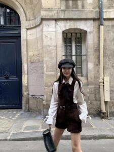 粗花呢背带裤+莱赛尔白衬衫