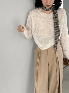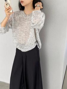 江左 慵懒宽松落肩袖羊毛马海毛针织2025秋季薄微透叠穿上衣 0616