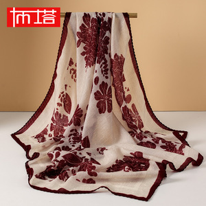 布塔围巾女秋冬季羊毛印花披肩外搭羊绒手感百搭保暖围脖PT25K647