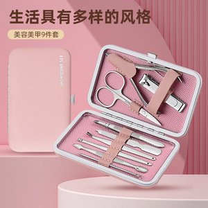 厂家现货少女款9件套指甲钳美甲工具个人护理不锈钢指甲剪刀套装