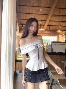 纯欲风辣妹一字肩无袖T恤女夏季2025新款修身显瘦设计感百搭上衣