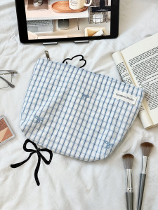 蓝色格子化妆包