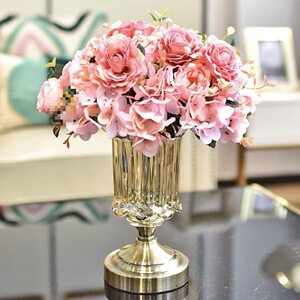 家居欧式古典餐桌摆件客厅装饰品轻奢玻璃花瓶玄关插花