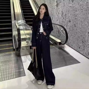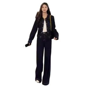 港风复古牛仔套装女2025春季新款时尚洋气短外套阔腿裤气质两件套