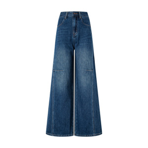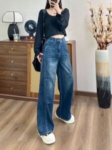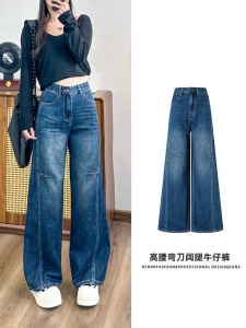 25年秋季弯刀裤女牛仔裤批发休闲简约设计复古水洗阔腿牛仔裤新款