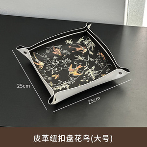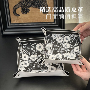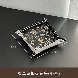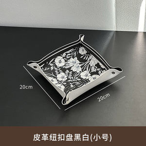 北欧简约皮革纽扣收纳盘钥匙饰品化妆品桌面鞋柜宿舍收纳置物盒