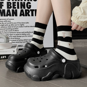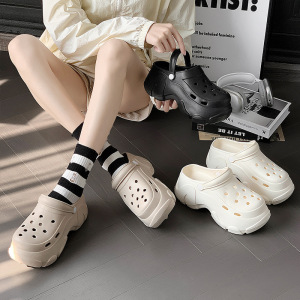 新款女士高跟厚底洞洞鞋EVA增高外穿洞洞鞋女款凉鞋凉拖鞋子批发