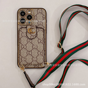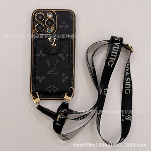 跨境爆款轻奢卡包潮牌斜跨链条适用iPhone17Promax复古苹果手机壳