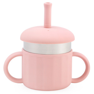 带把手双耳开口硅胶零食杯婴幼儿宝宝零食盒创意学饮杯吸管直饮杯