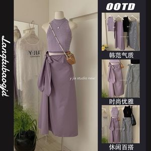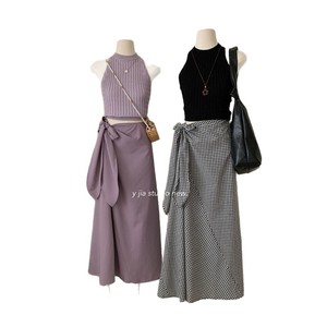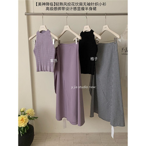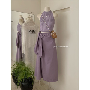 新款2025法式轻熟风挂脖露肩针织衫+高级感绑带半身裙绝美套装女