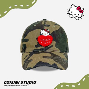 美式迷彩可爱刺绣kitty猫咪棒球帽女软顶嘻哈千禧辣妹风鸭舌帽潮