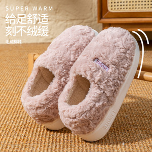 厂家直销毛毛拖鞋女居家保暖棉鞋包跟可外穿厚底防滑情侣棉拖鞋男