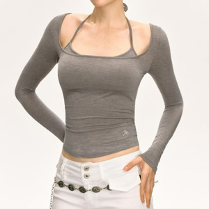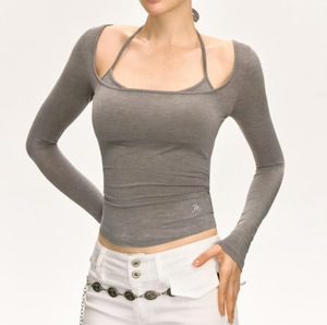 2025美式设计感假两件长袖T恤女春季新款打底修身洋气短款上衣