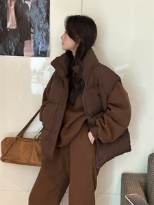 韩系时尚百搭棉服马甲女冬季新款ins叠穿坎肩立领背心外套上衣女