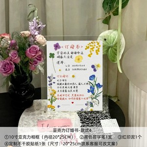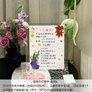 亚克力订婚书创意彩色压花贴纸结婚高级个性摆台布置婚书相框摆件