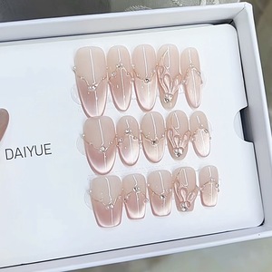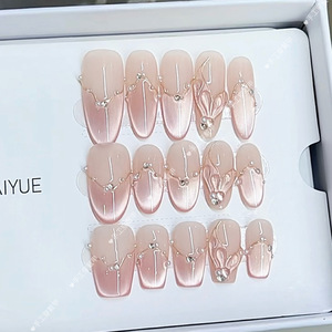奈姿 纯手工穿戴甲夏季新款人鱼恋歌手绘鱼尾气质猫眼美甲贴片