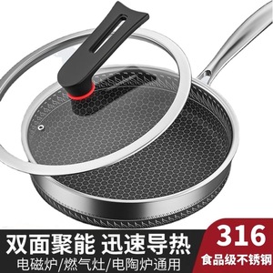 316L不锈钢煎锅家用平底锅煎牛排煎鸡蛋锅无涂层电磁炉燃气通用锅