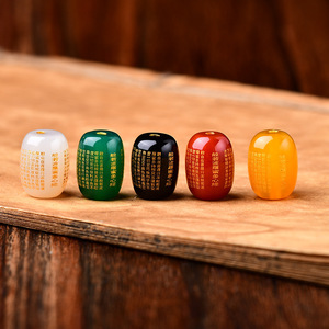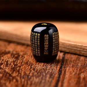 7A天然红玛瑙散珠心经桶珠黑玛瑙大悲咒烫金文男女士手串手链配件
