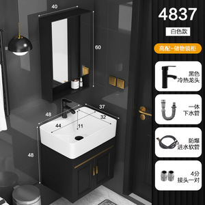 48x37(黑边)盆柜+黑色龙头+镜柜