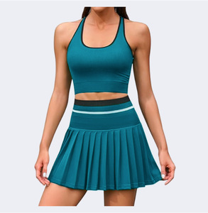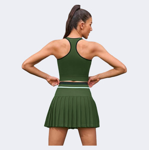 亚马逊女式网球裙高腰百褶裙套装无缝拼色高尔夫服装alo瑜伽裙套