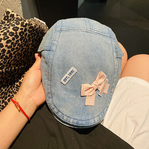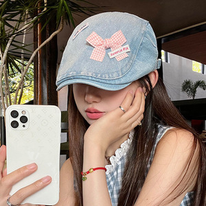 秋季帽子新款日系甜美立体蝴蝶结牛仔前进帽文艺复古显脸小画家帽