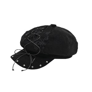 原创y2k暗黑铆钉绑带破碎感骼髅八角帽女春夏亚比风显脸小画家帽