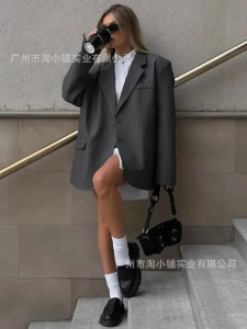 灰色条纹西装外套女秋冬2025新款气质名媛高级感小个子宽松小西服