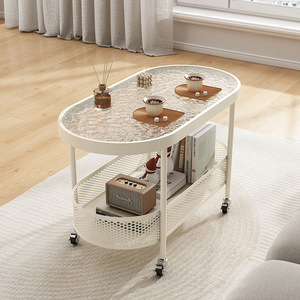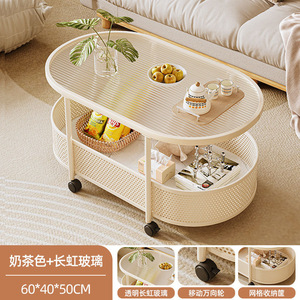 新款小户型奶油风可移动沙发侧边柜边几双层置物架茶几零食小推车