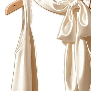 法式香槟白缎面挂脖上衣女夏季新款宽松蝴蝶结衬衫洋气减龄小衫薄
