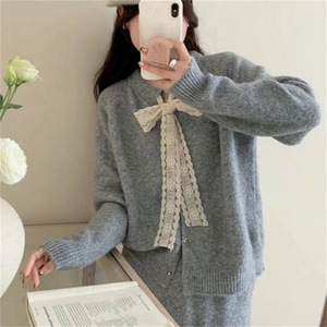 温柔气质套装女秋冬2025年新款系带毛衣A字针织半身裙纯色两件套