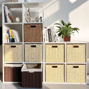 日式仿编收纳筐纯色客厅高颜值长方形收纳箱仿藤编收纳框