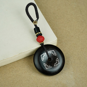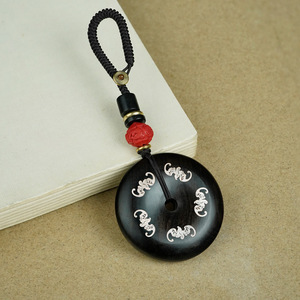 小叶紫檀木镶银四如意挂件平安扣镶嵌五福临门国风挂饰钥匙扣饰品