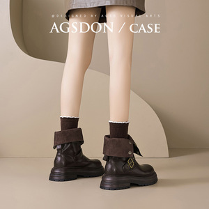 奥古狮登厚底马丁靴女2025新款秋季棕色中筒短靴复古美拉德骑士靴