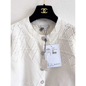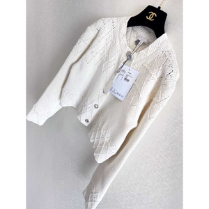 正确版本 25新款CH复古气质菱格纹小香风镂空长袖勾花圆领针织开