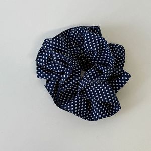韩系复古藏蓝小波点蝴蝶结发圈方巾高级感气质文艺扎马尾发绳发饰