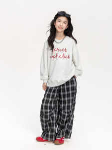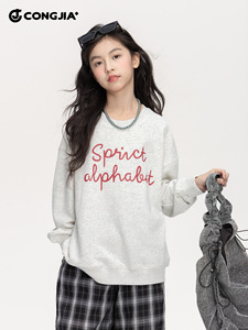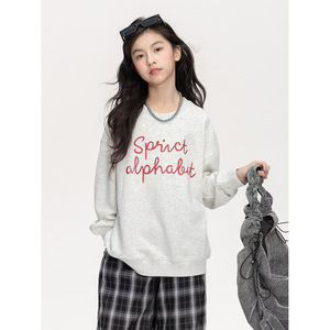 女童字母印花卫衣2025秋季新款儿童中大童慵懒风宽松休闲长袖上衣