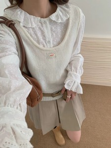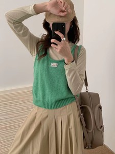 秋季绿色u领蕾丝标针织吊带背心马甲女外搭叠穿韩系坎肩无袖上衣