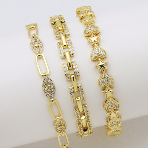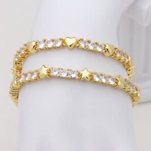 跨境新款轻奢时尚高级款星星五角星桃心爱心大锆石保色18K手链女