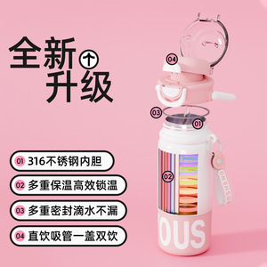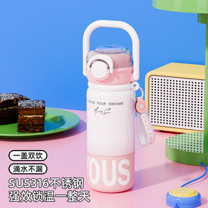 保温杯双饮高颜值316儿童不锈钢水杯学生便携大容量水杯