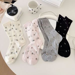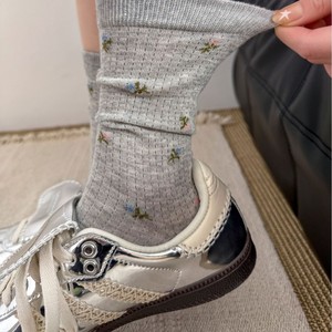 端木氏碎花袜子女中筒棉袜夏薄款网眼吸汗透气防臭日系堆堆袜长袜