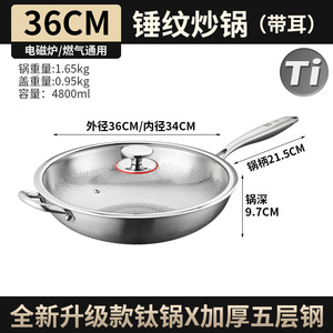 高端TI钛锅纯钛炒锅无涂层不粘锅鱼鳞锤纹钛炒锅家用炒菜锅电磁炉