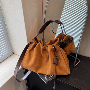复古高级感大容量托特包包女2025早秋休闲麂皮绒垃圾袋单肩斜挎包