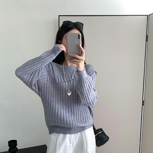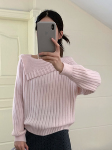 坑条一字肩打底毛衣女秋冬季大码胖mm百搭针织衫气质修身内搭上衣