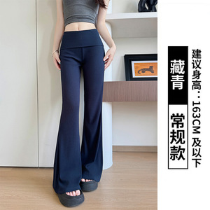 美式翻腰微喇叭裤女夏季薄款低腰辣妹运动卫裤显瘦运动瑜伽马蹄裤