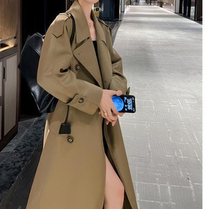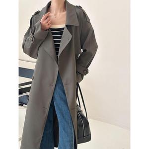 2025春秋时尚新款系带长款风衣女宽松韩系感慵懒风