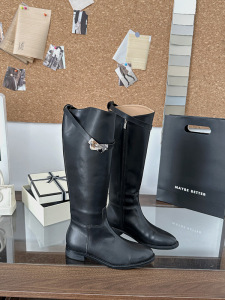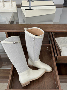 2025新款秋冬小个子粗腿靴子复古锁扣骑士靴厚底不过膝瘦瘦长靴