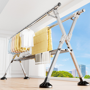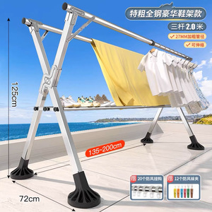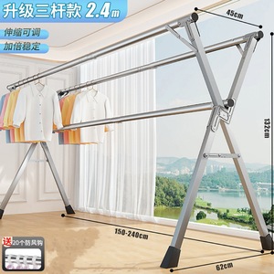 折叠晾衣架室内外阳台不锈钢伸缩挂衣架晒被架衣帽架晾衣杆落地